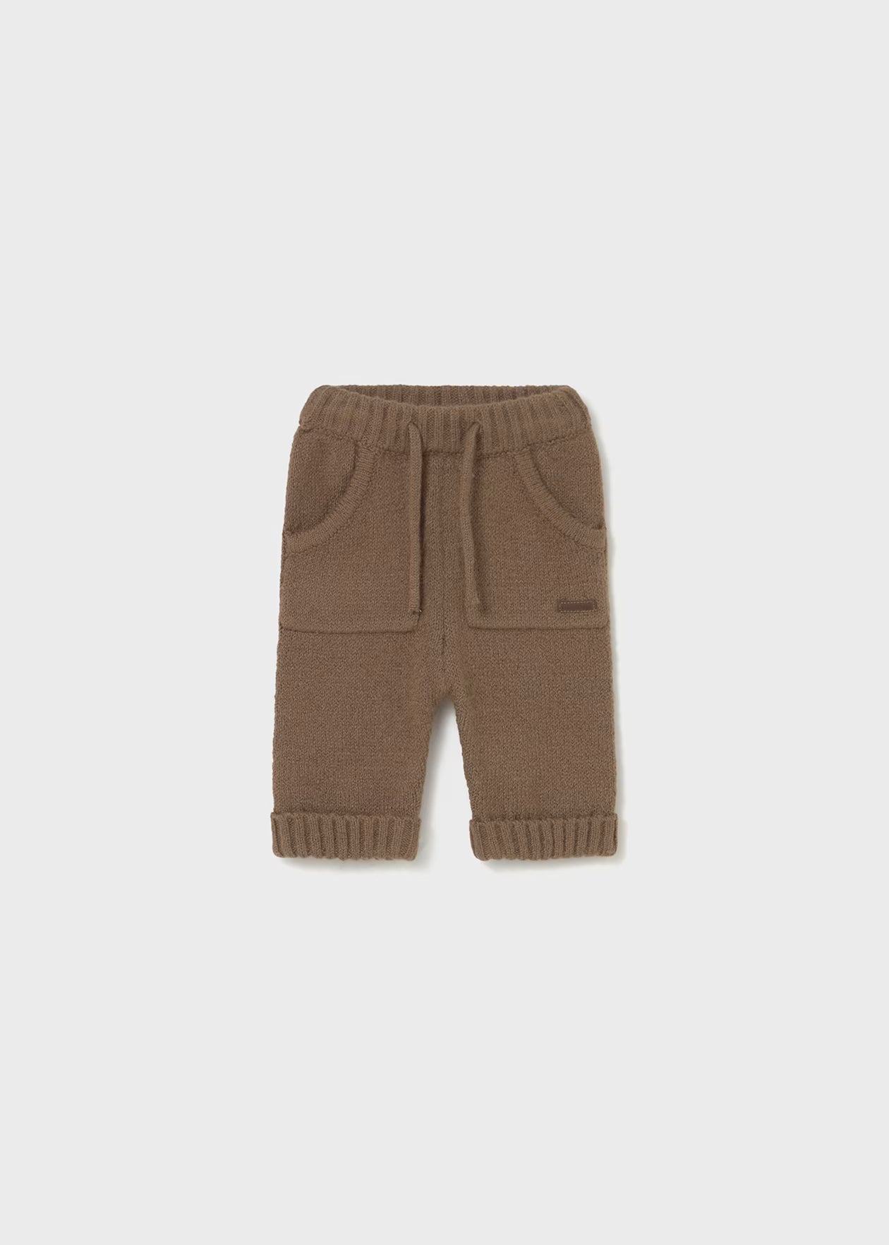 Pants for newborn baby boy. Elasticated waistband with adjustable drawstring. Knitted fabric, soft and pleasant to the touch. Functional front pockets.