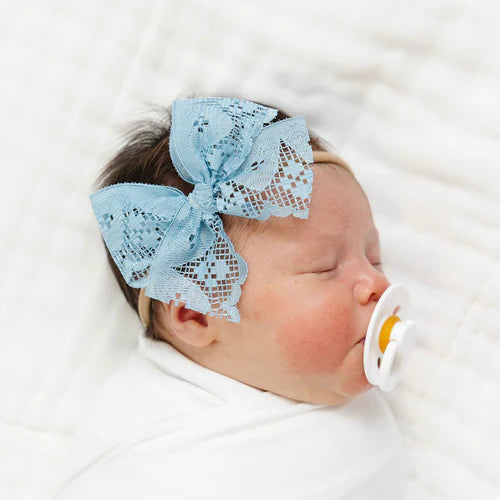 Truly one of a kind! Each bow is hand-tied by local moms with one of a kind vintage lace and attached to a one-size-fits-all nylon headband. All bows and edges are secured and sealed so they don’t come undone.