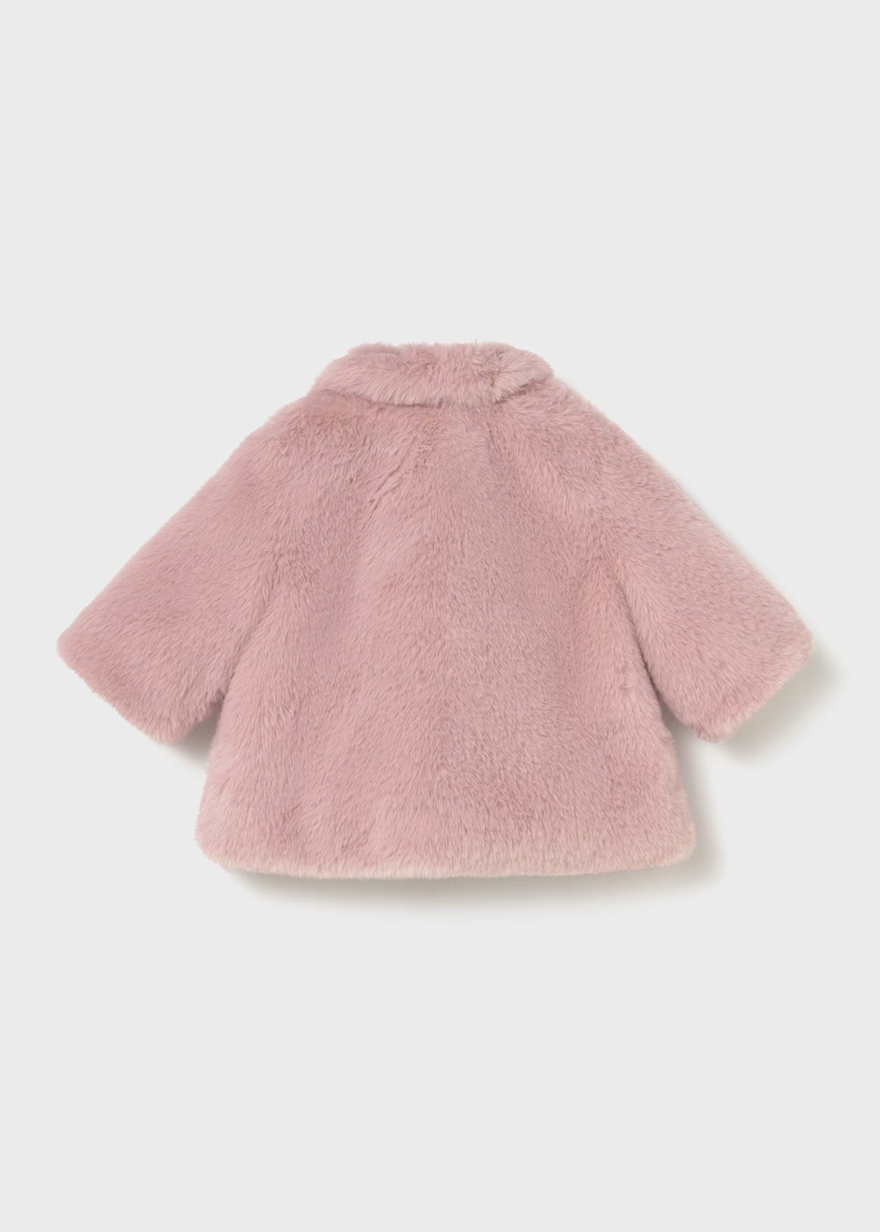 Long sleeved Coat for newborn baby girl Baby neck. Fastening with hidden clasps which allow the item to be put on easily. Soft and smooth outer faux fur fabric. Lightweight quilted inner lining for better thermal insulation. Functional front pockets. Decorative elements: pompoms.