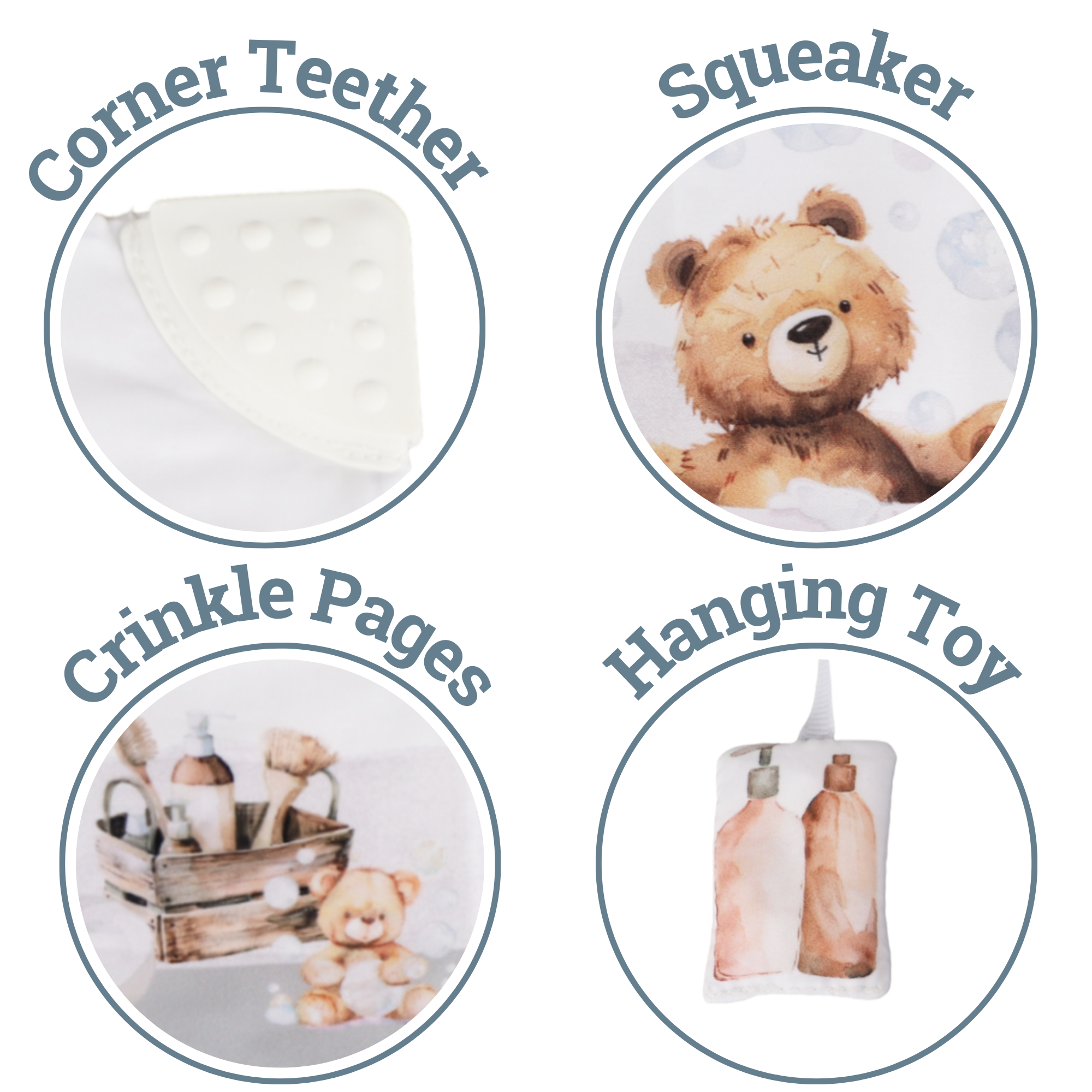 Splish, splash, and giggle with this 10-page soft cloth book full of cozy bath-time fun. Designed for sensory development and early storytelling, the Bubble Bath book features sweet animal friends, gentle rhymes, and interactive textures to keep your little one engaged.