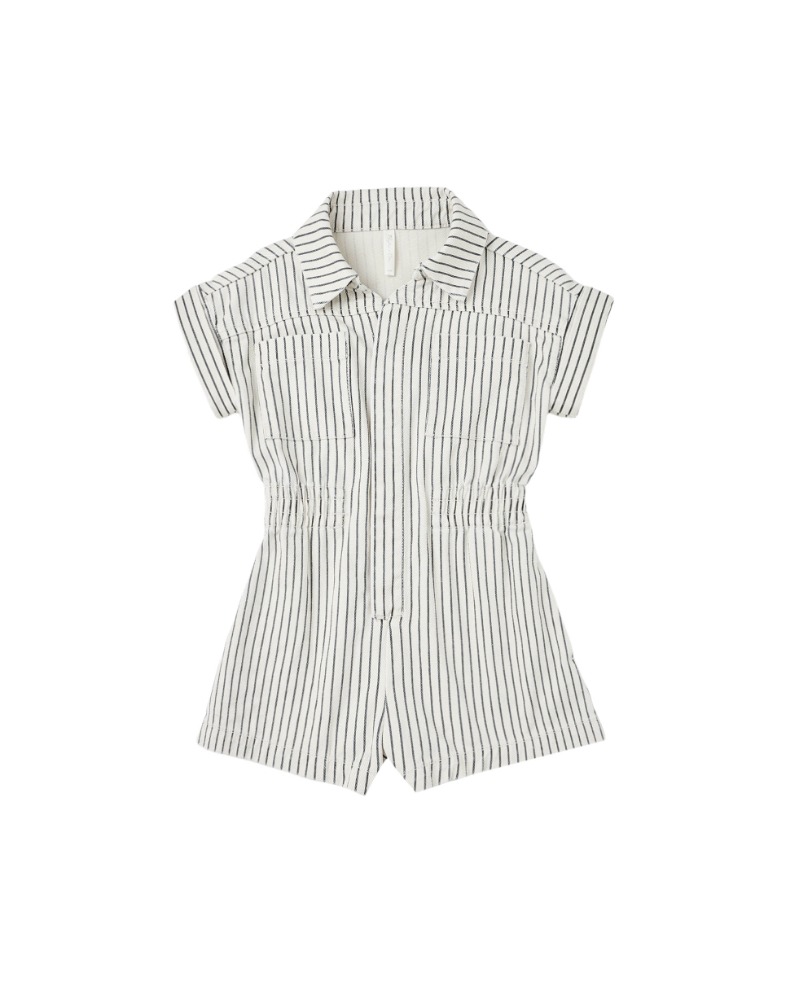 Meet our Utility Romper, designed with cuffed sleeves, hidden snaps, an elastic waist, and slit pockets. This look is bringing all the cool back-to-school vibes.