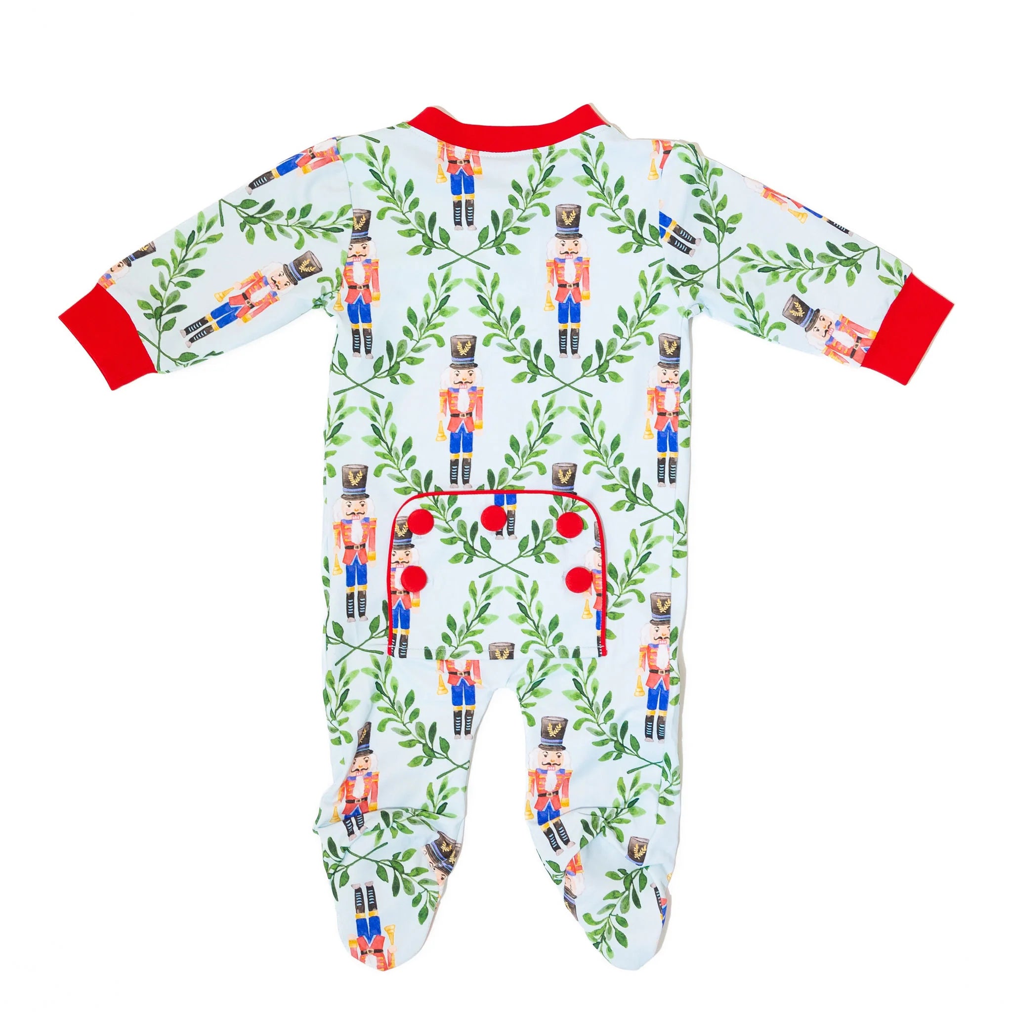 These festive Baby Boy Red Nutcracker Ruffle Pajamas are designed from our Custom Red Nutcracker fabric and feature a onesie design with a cute butt flap. This outfit is sure to make Christmas morning extra special.