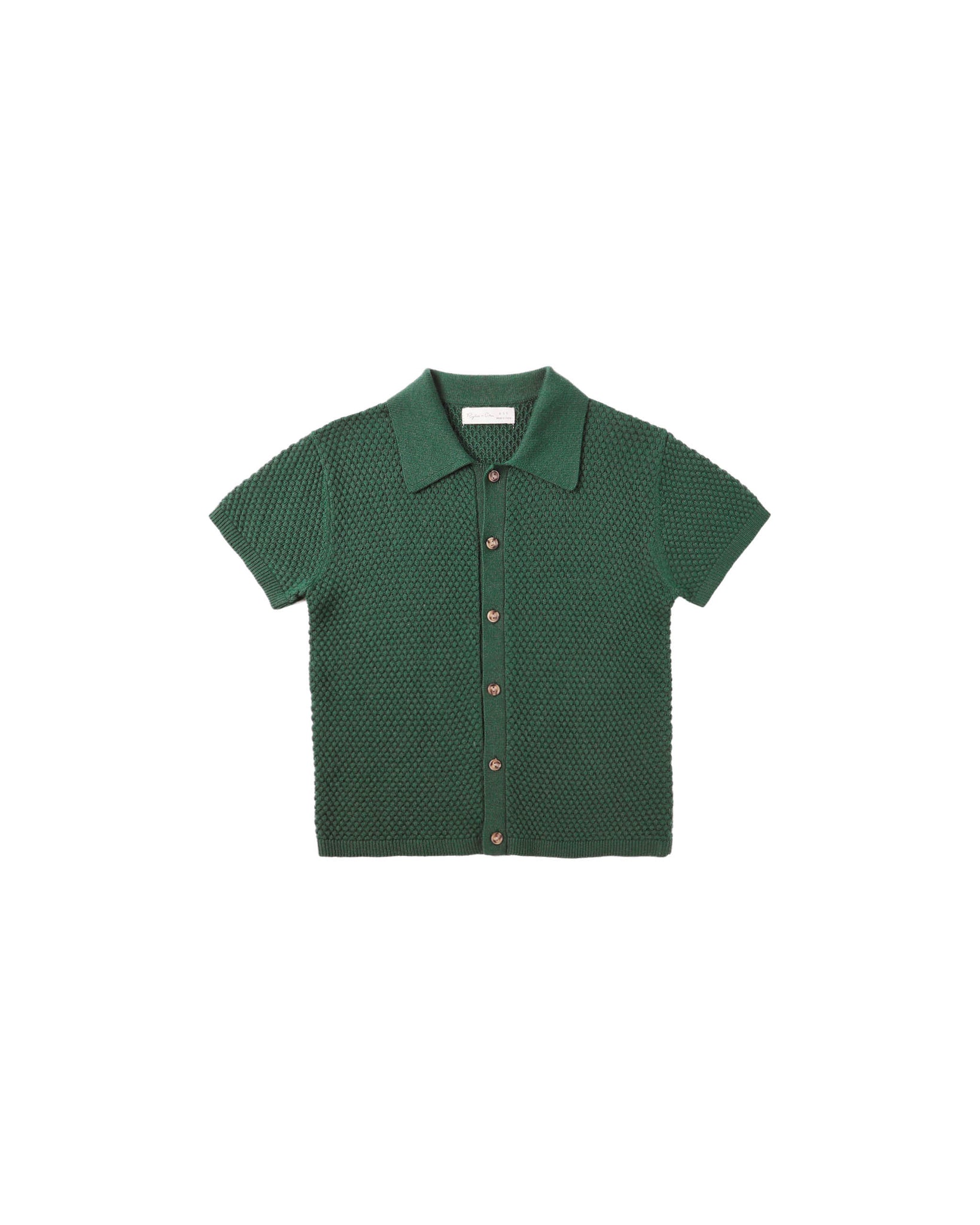 This textured knit button-down blends classic old-money charm with a sporty edge.