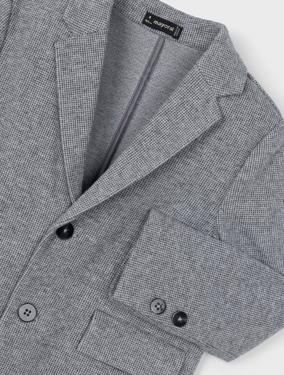 Long sleeved Jacket for boys. Lapel collar. Button fastenings down the front.