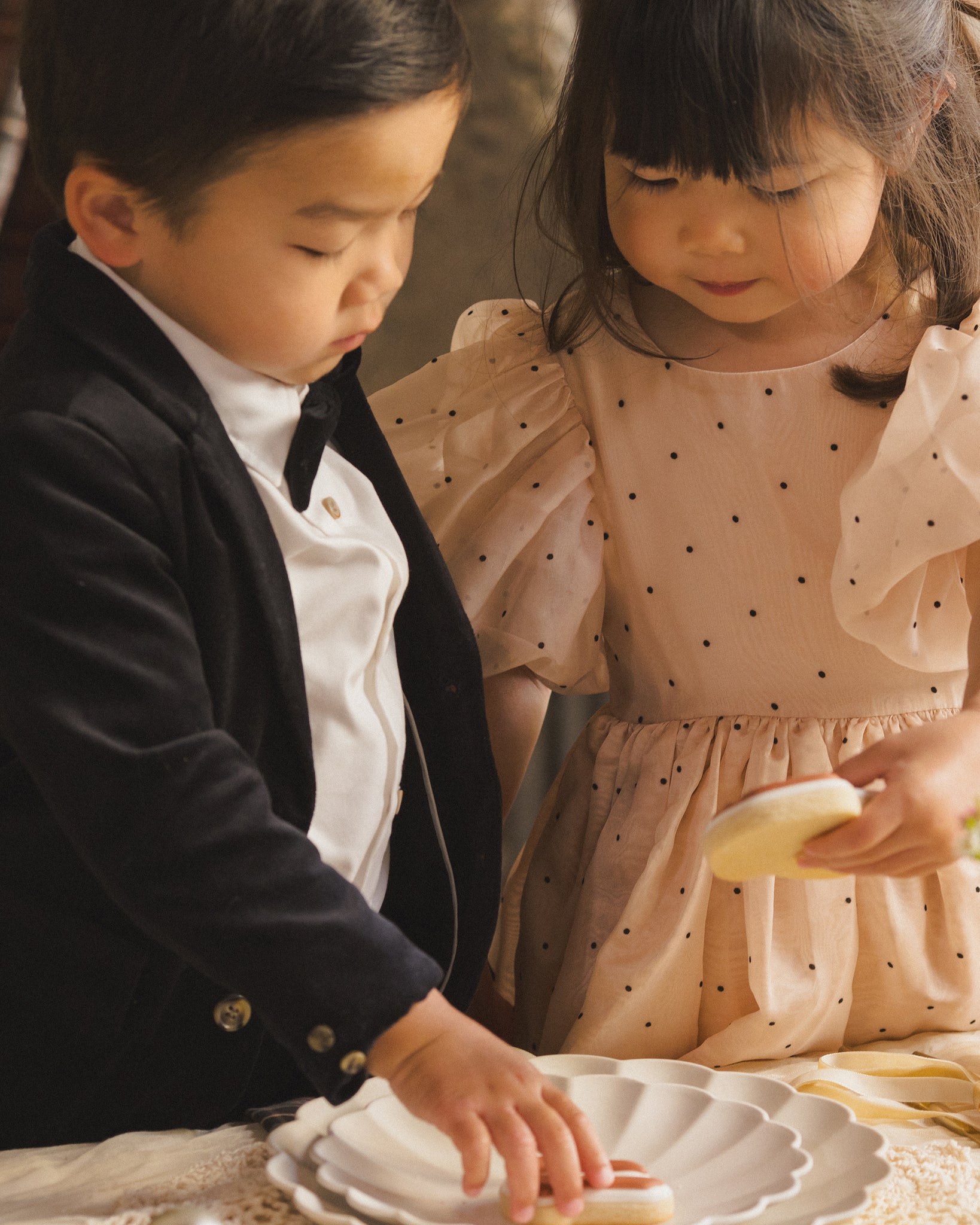 This velvet single-breasted jacket features sharp notched lapels, marbled buttons, and front pockets, finished with a vent at the back for your little gentleman to move with ease.