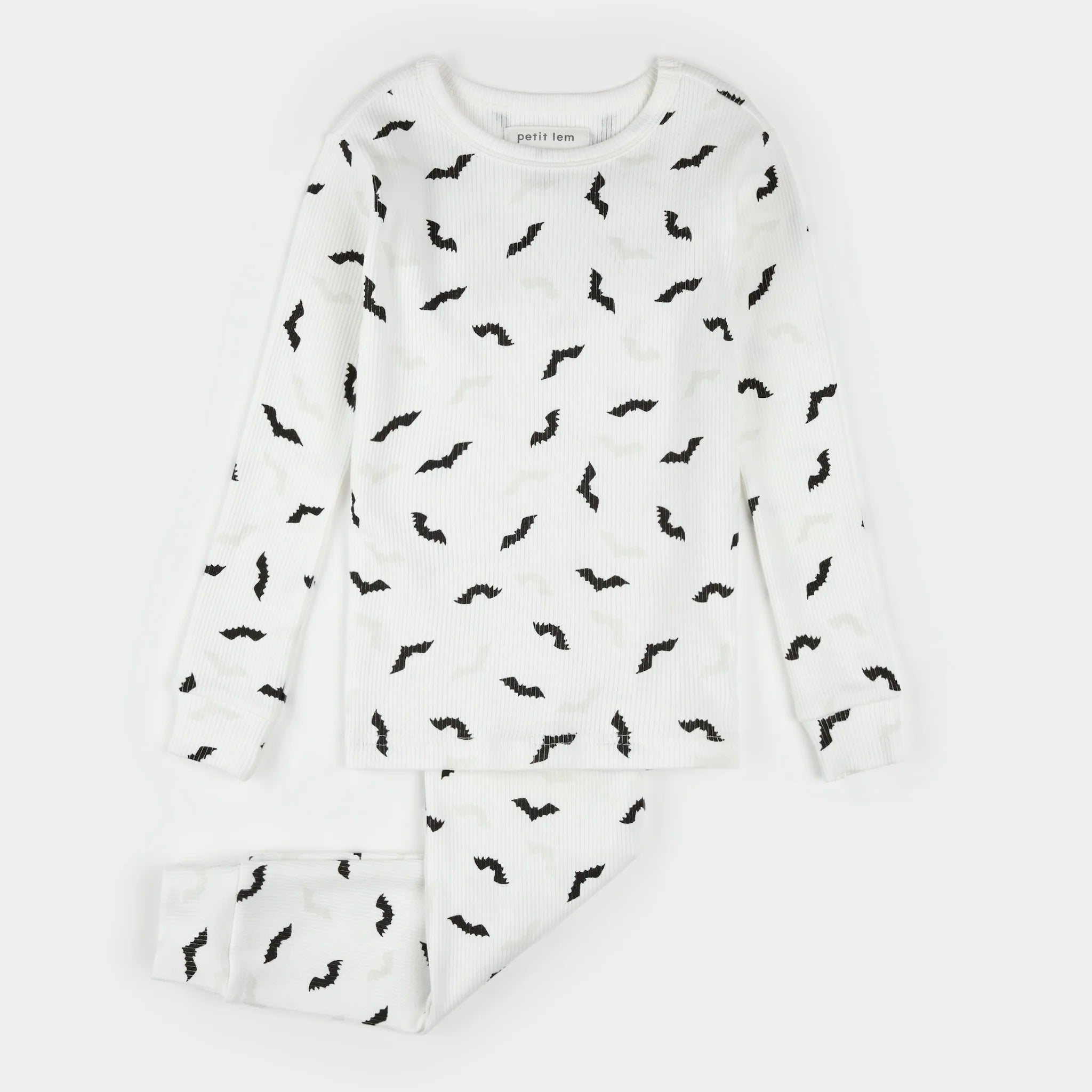 Bats Glow in the Dark Print on Off-White PJ Set - Kids