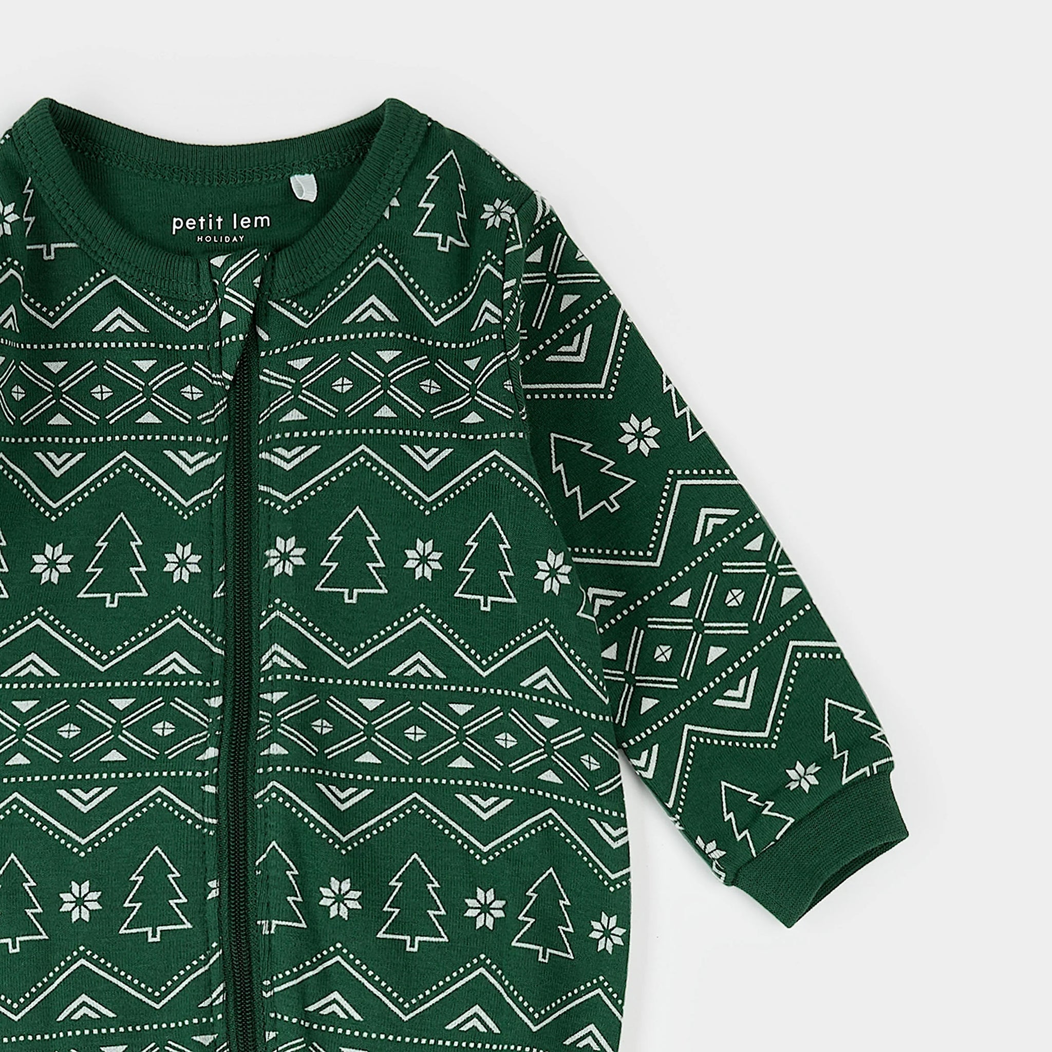 Fair Isle Holiday Trees Print on Dark Green Sleeper
