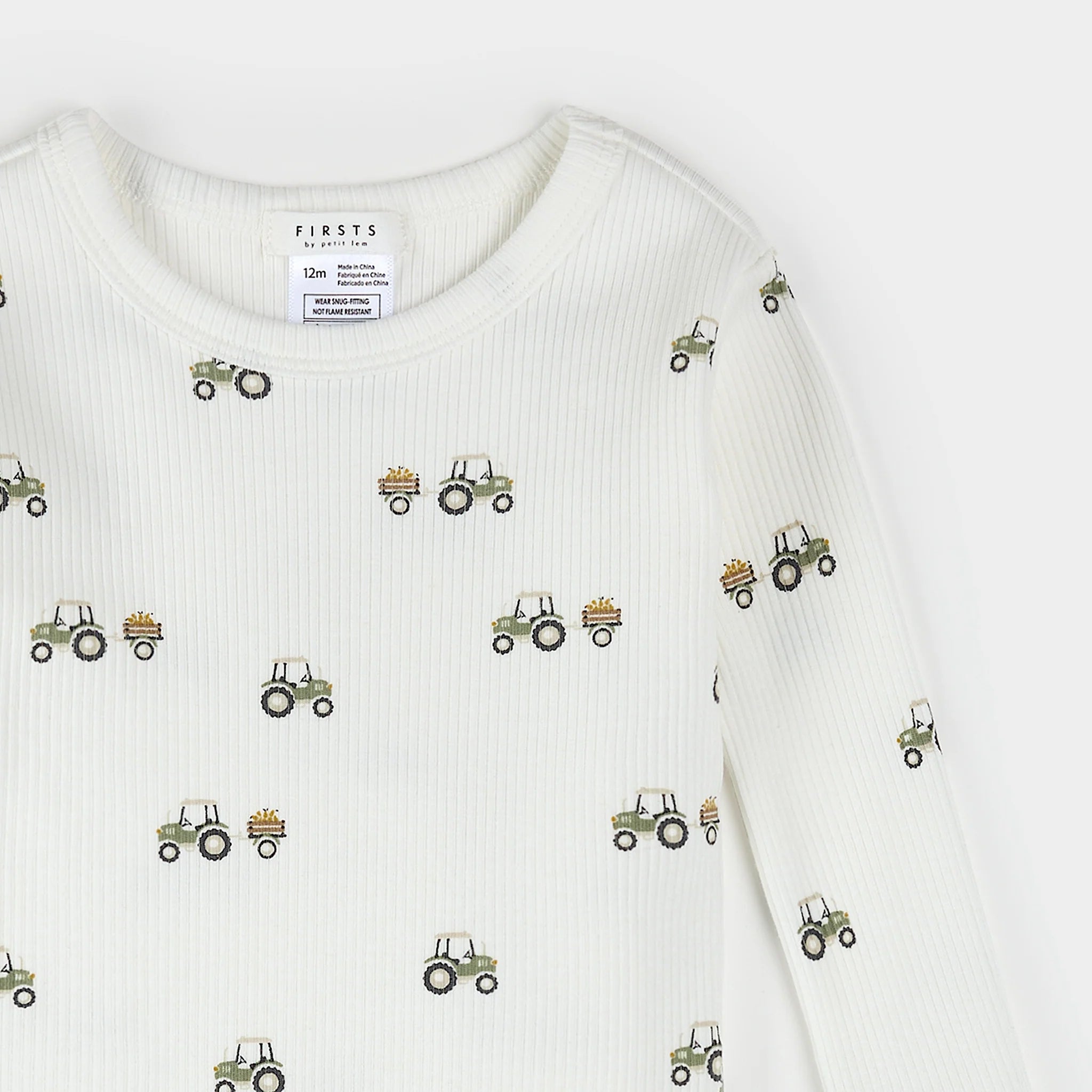 Pear Picking Truck Print on Off-White Infant PJ Set