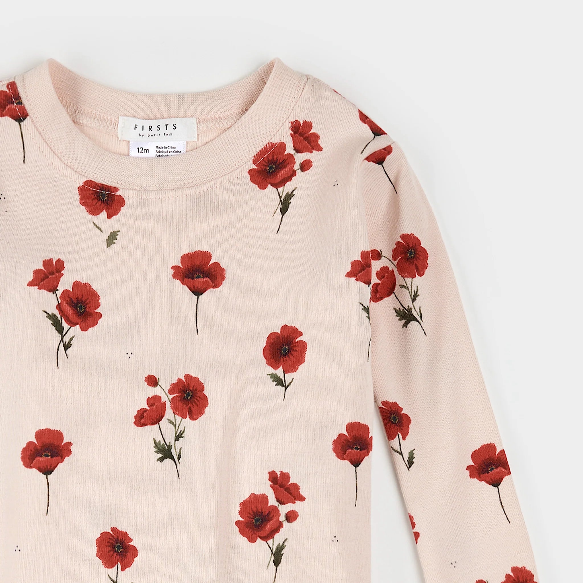 A cozy and breathable pyjama set for dreamy Fall nights and snuggly mornings with the fam. Made from organically grown cotton rib, the super-soft set has long sleeves and long pants, perfect for the cooler months. Featuring our sweet Poppy print, it matches the sleeper available for younger siblings.