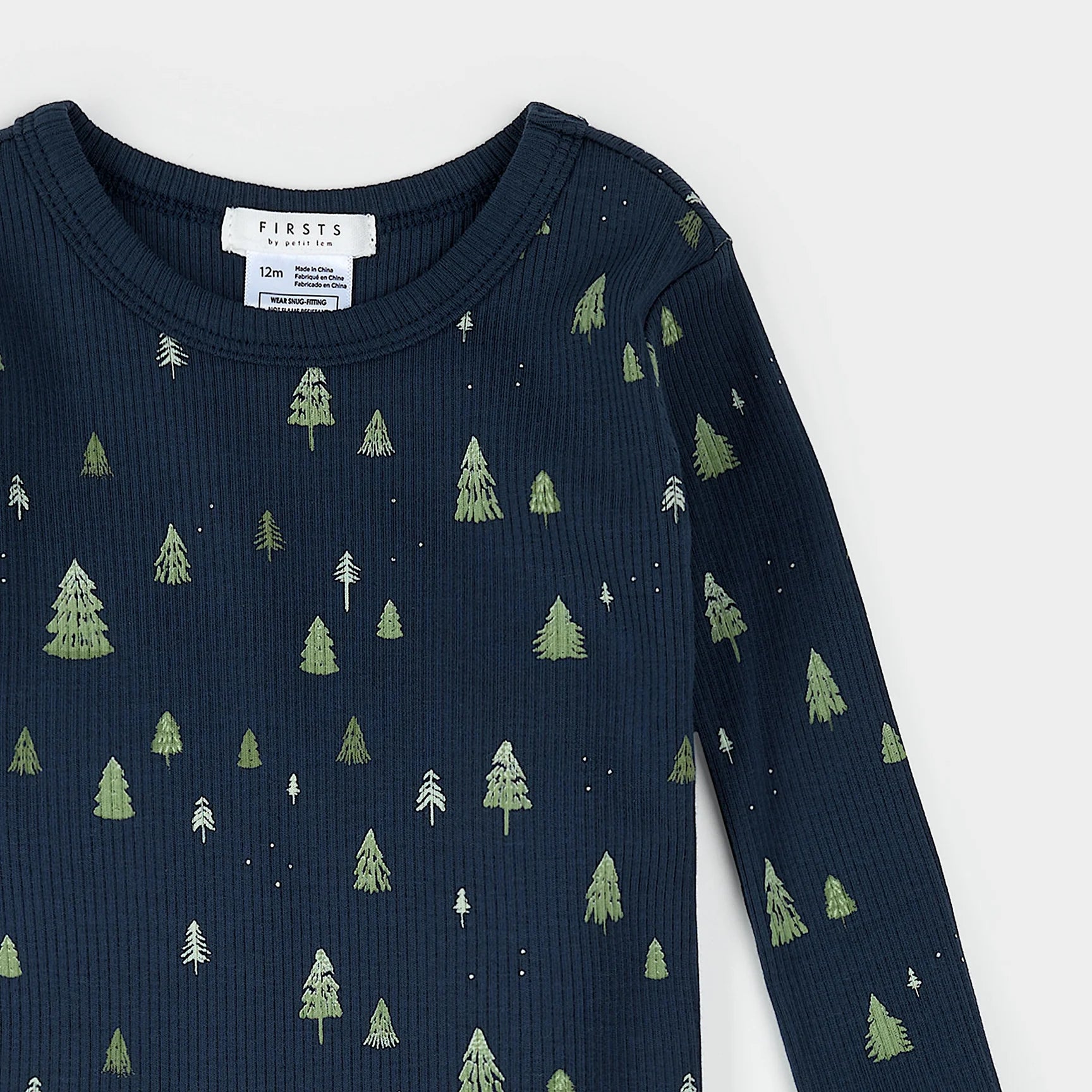 Made for cozy nights and frosty mornings, this soft ribbed PJ set features a wintry Trees print and matches the sleeper available in the same collection. With a snug, long-sleeved top and elastic-waist pants, it’s perfect for little ones to play, lounge or sleep.