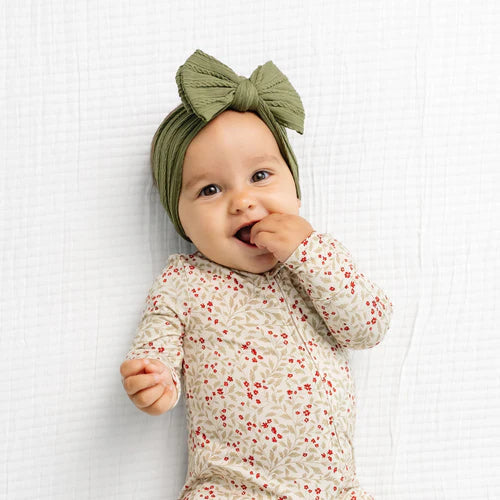 This stretchy nylon cable knit headband is soft, cozy, and beautifully textured—perfect for little ones. Made from a plush, ribbed cable knit fabric, it features a statement bow that’s both classic and adorable.