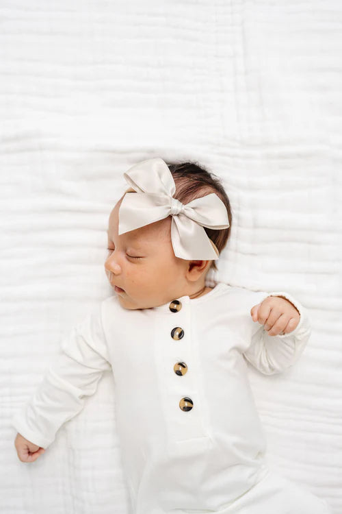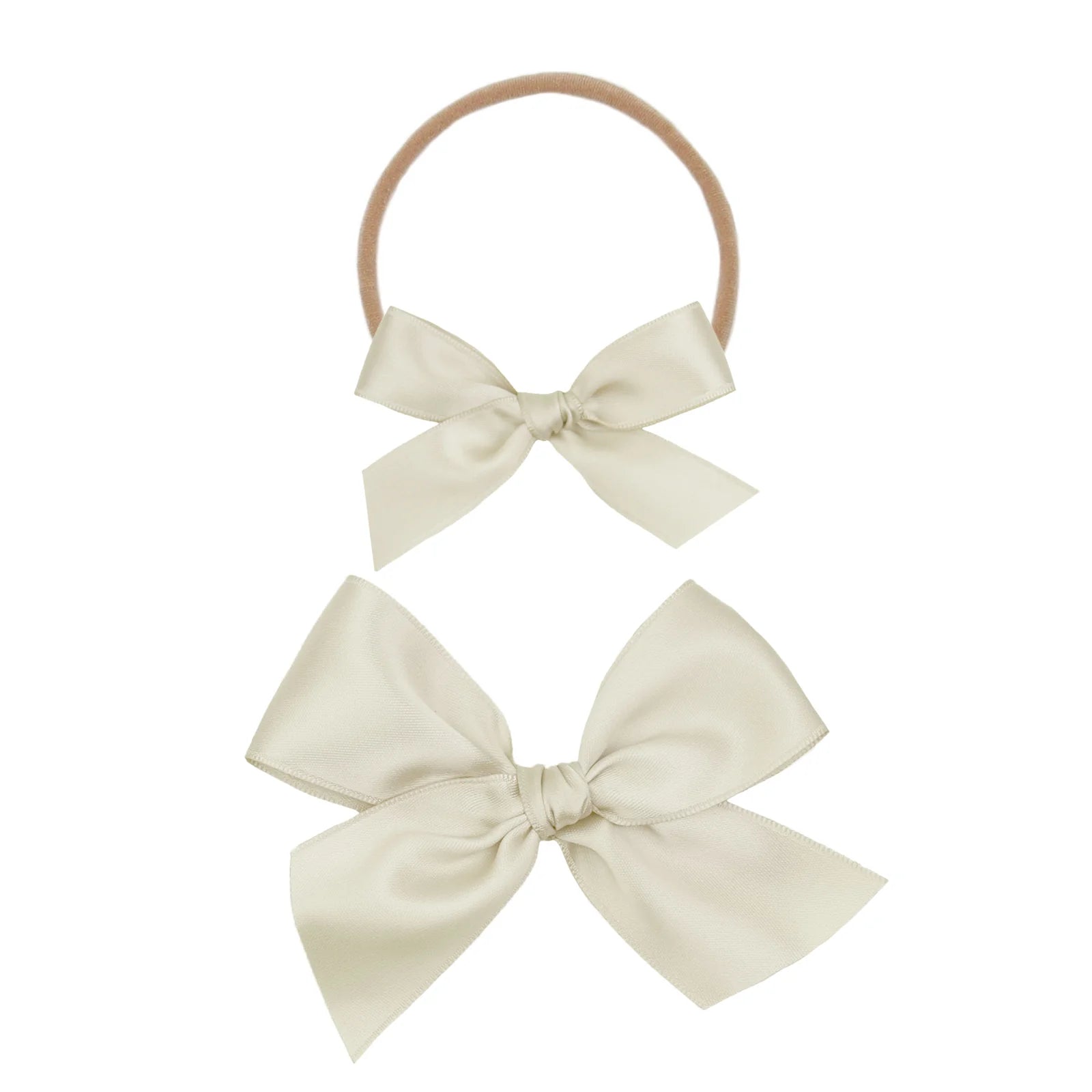 Dress your little one up with our satin bows! Handmade by local moms from high-quality satin. This is the perfect bow for your darling little girl! Each bow is hand tied and is attached to either a nylon headband or alligator clip. All bows are secured so they do not come undone!