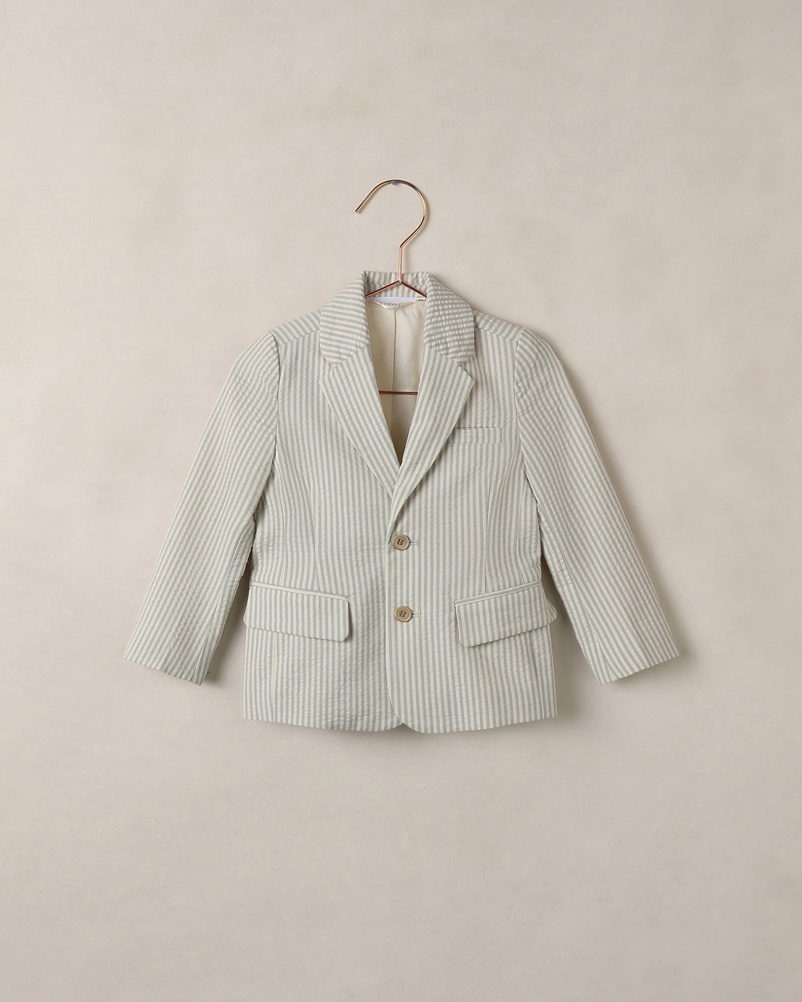 Single-breasted jacket in our soft cotton melange. Features notched lapels, marbled buttons, and pockets at the front, with a vent at the back.