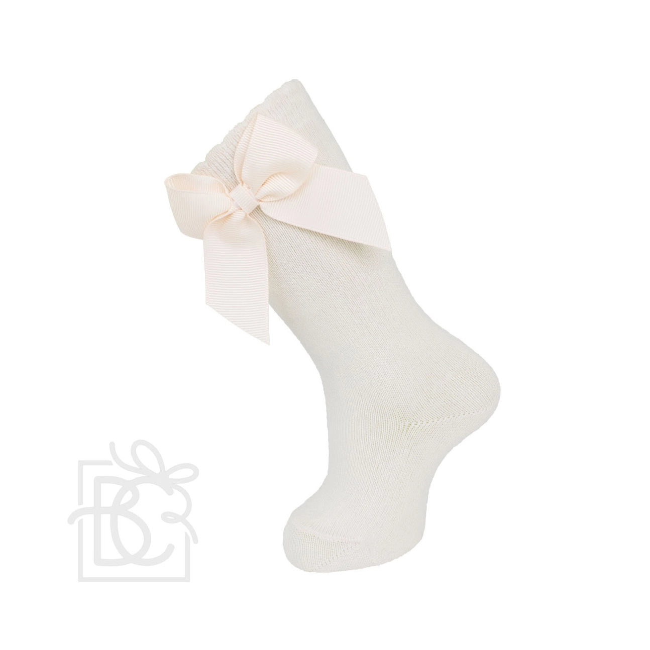 Knee socks with gross grain side bow.