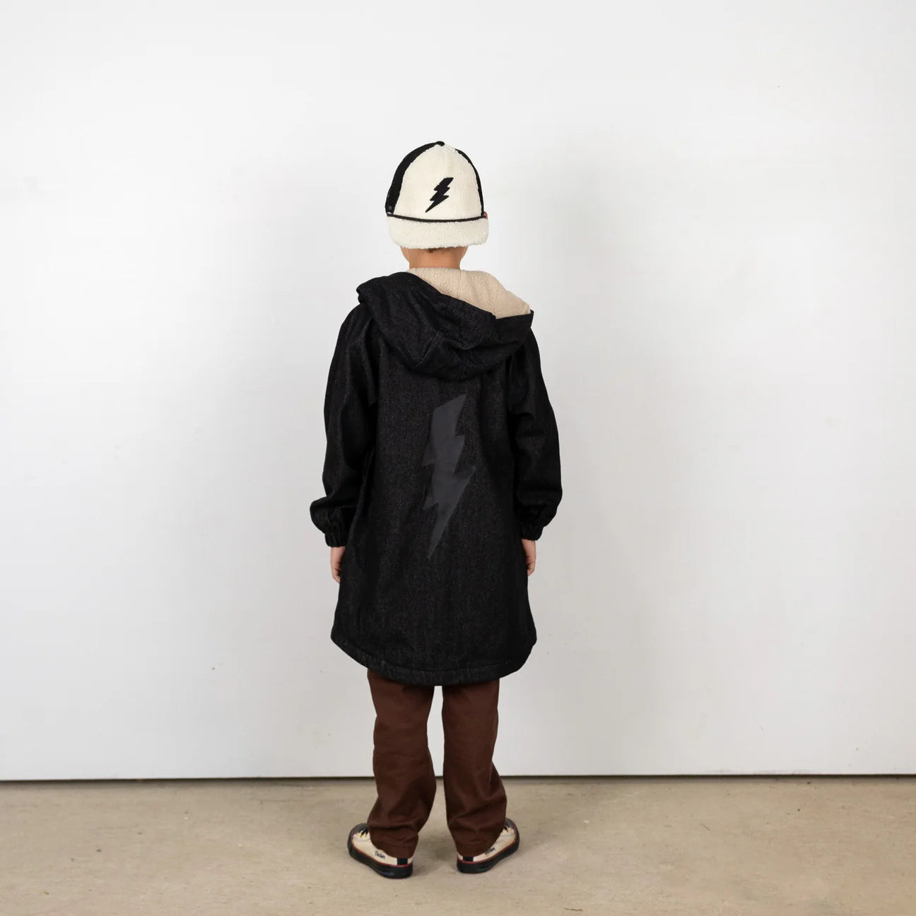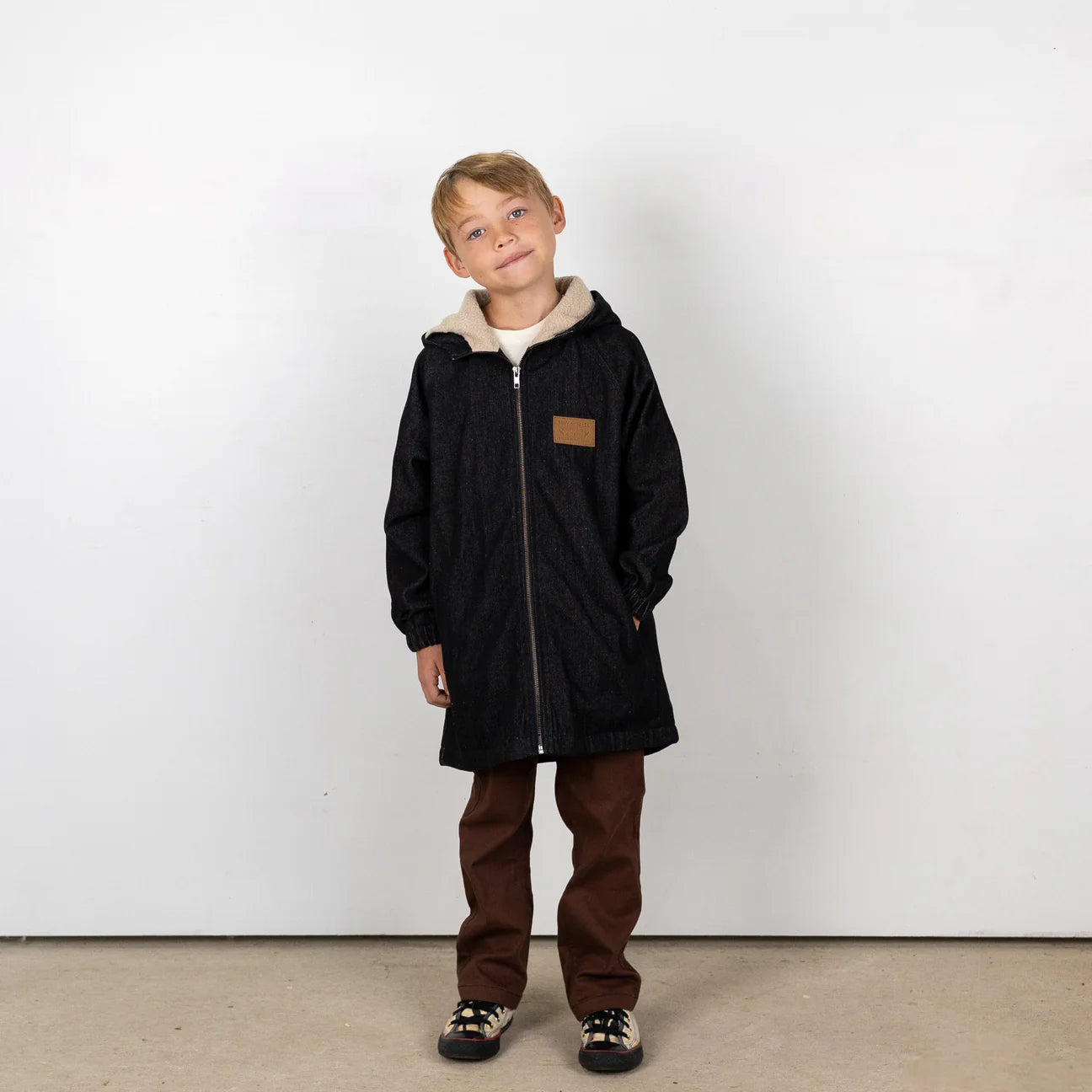 Introducing the Nomad Trench Jacket, the ultimate combination of style and comfort. Made from 100% cotton and washed black denim, this jacket features a hood and zipper closure, perfect for any adventure. Embrace your wanderlust with this must-have jacket.