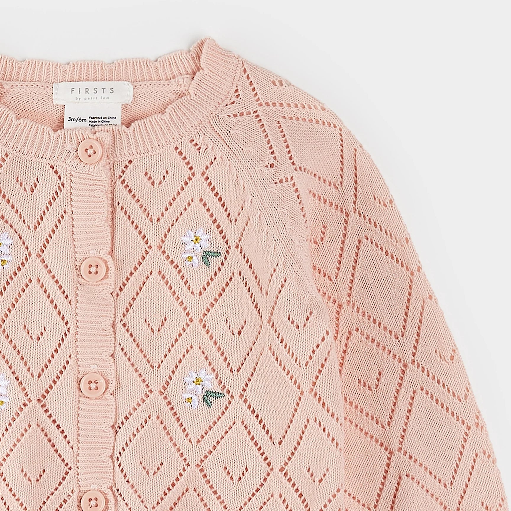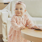 Cardigans are a staple for chilly spring days. This pointelle knit piece is extra cozy and made from the softest organically grown cotton. With simple flower motifs on the front, the cardigan coordinates beautifully with outfit sets from the same range.